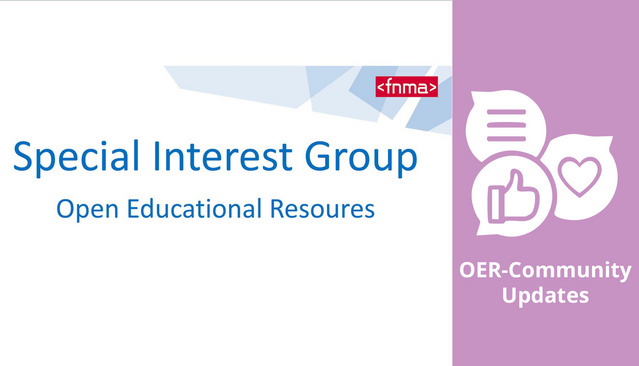 Open Educational Resources (OER) sind Grundlage für offene Lehrpraktiken, rechtssichere Materialnutzung und sichtbare Lehrleistungen. Wer diese Entwicklung aktiv mitgestalten möchte, findet in der Special Interest Group (SIG) OER der fnma eine offene Plattform für Austausch, Vernetzung und Zusammenarbeit.